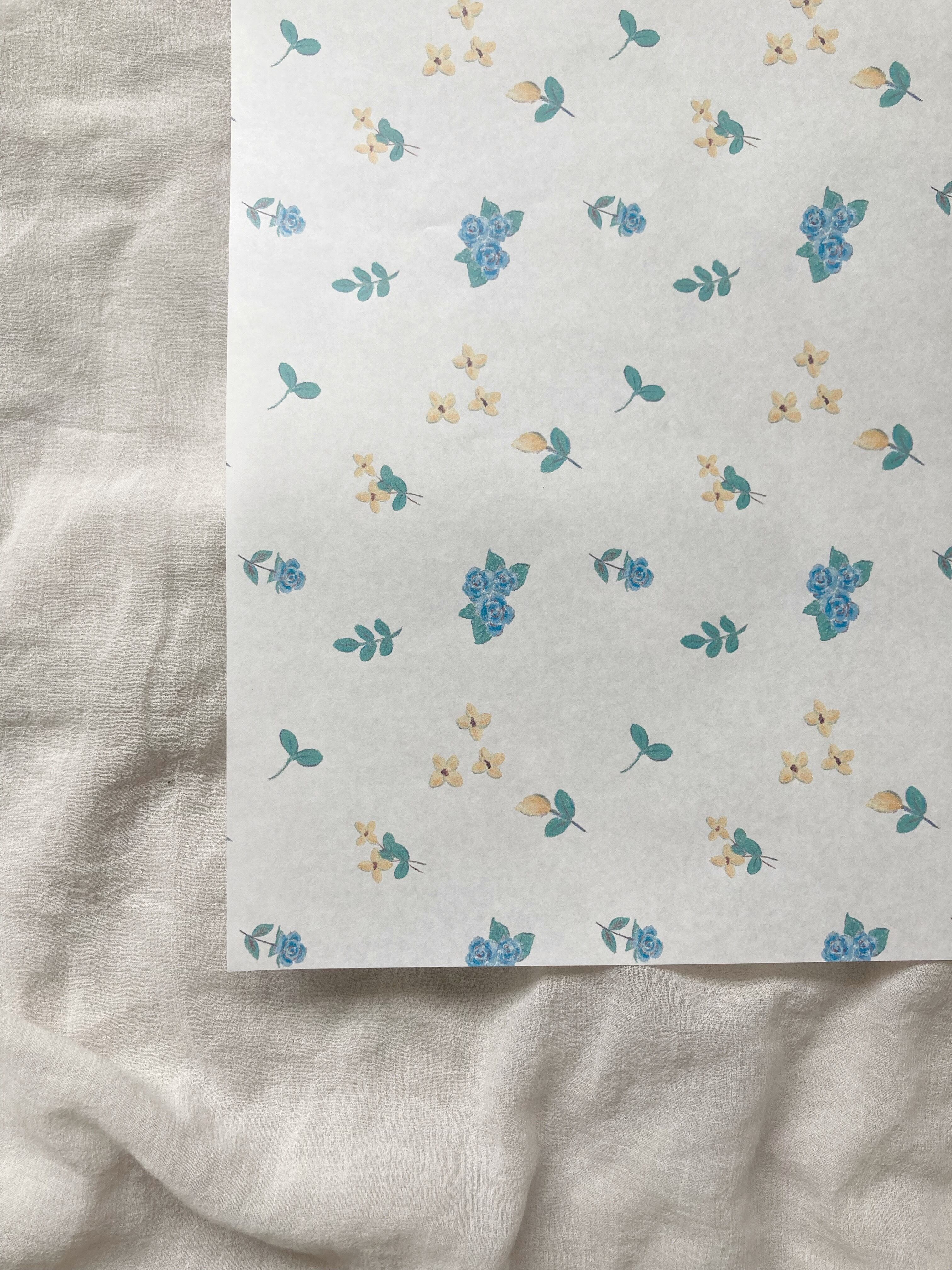 アンティーク皿の花柄を参考にお花のイラストが描かれたラッピングペーパーです。